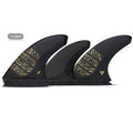 The Alpha line is constructed with recycled fishing combined with our C6 air-infused carbon. The 5-fin set is designed to be ridden as either a Thruster or Quad set-up, packaged together for more versatility throughout your quiver.