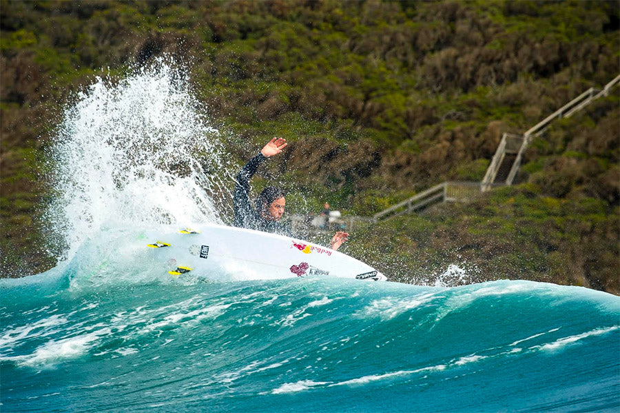 Futures' proprietary performance rating system, Ride Number, is making its way into the hearts of our team riders on the World Tour. Jordy Smith applied the concepts to suit his need and take home a runner-up finish at the Rip Curl Pro last weekend at Bells Beach. The Ride Number scale categorizes the feel of individual fin sets and places them into three main categories; Speed Generating, Balanced or Speed Control based on the construction of the set, with each set having its own unique performance number. The performance numbers are consistent along the Ride Number scale within Futures' variety of fin constructions, creating a different performance and feeling for each construction.
